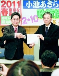 石原都政を転換し、新しい福祉都市、東京をつくるための政策協定に調印しました。